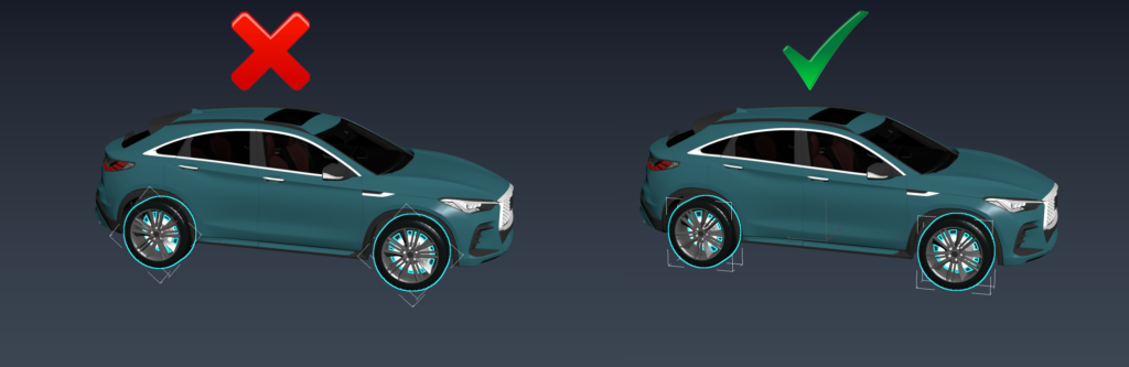 При выборе нескольких поверхностей автомобиль “приклеится” к той, что будет ближе в Главному контролу.